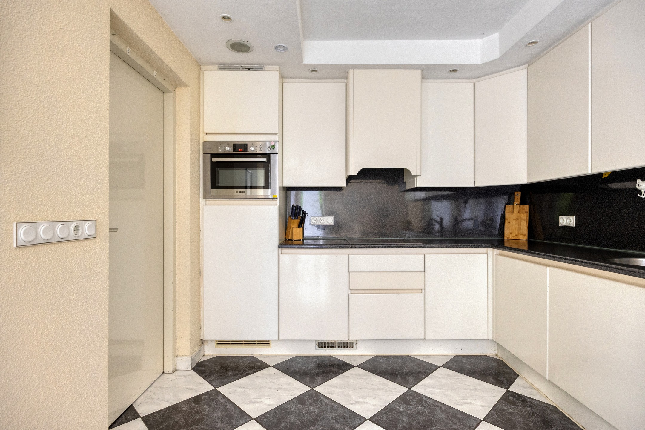 Aangrenzend aan de keuken vindt u de praktische bijkeuken met aansluitingen voor wasmachine en droger. Vanuit hier heeft u toegang tot zowel de tuin als de inpandige garage.