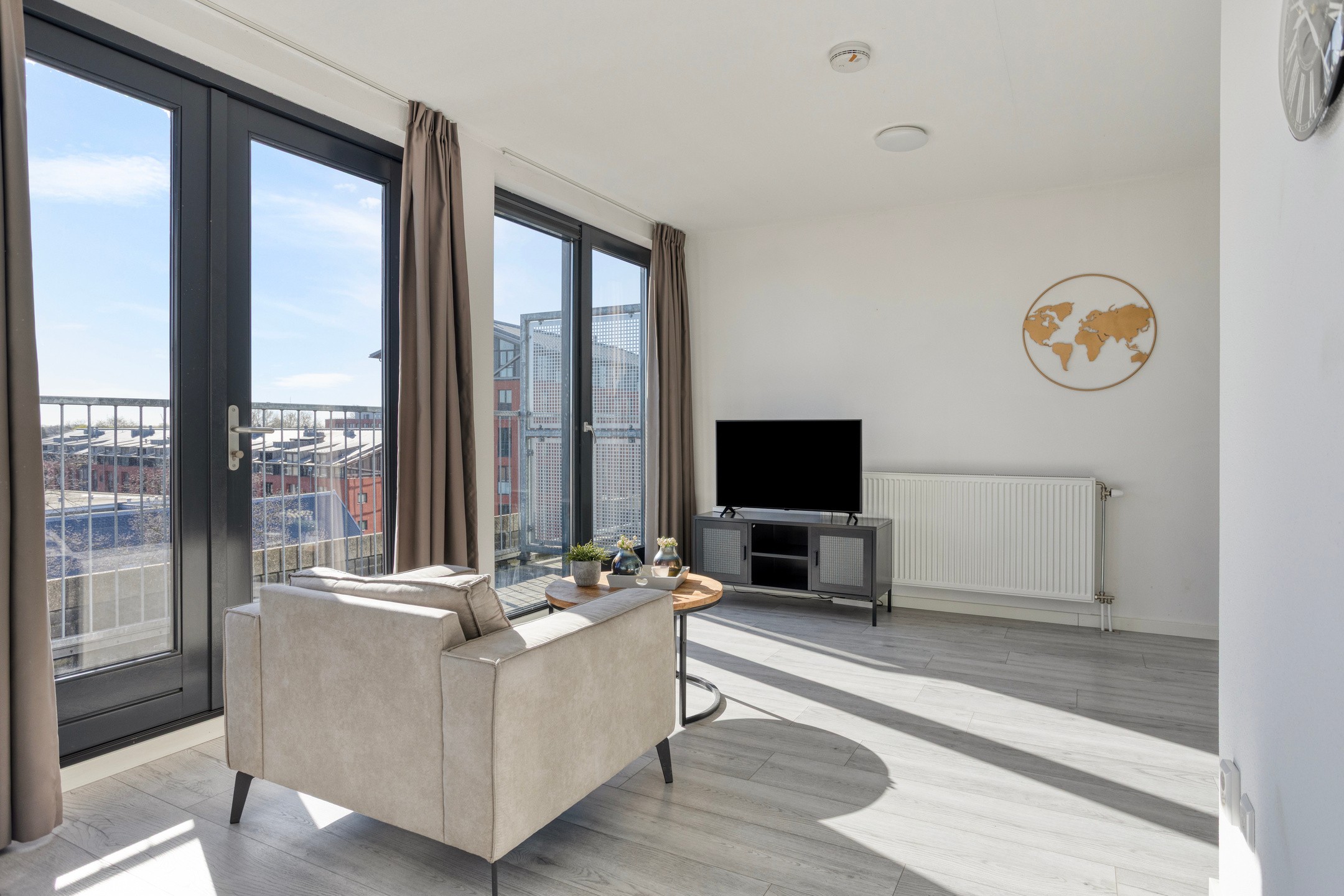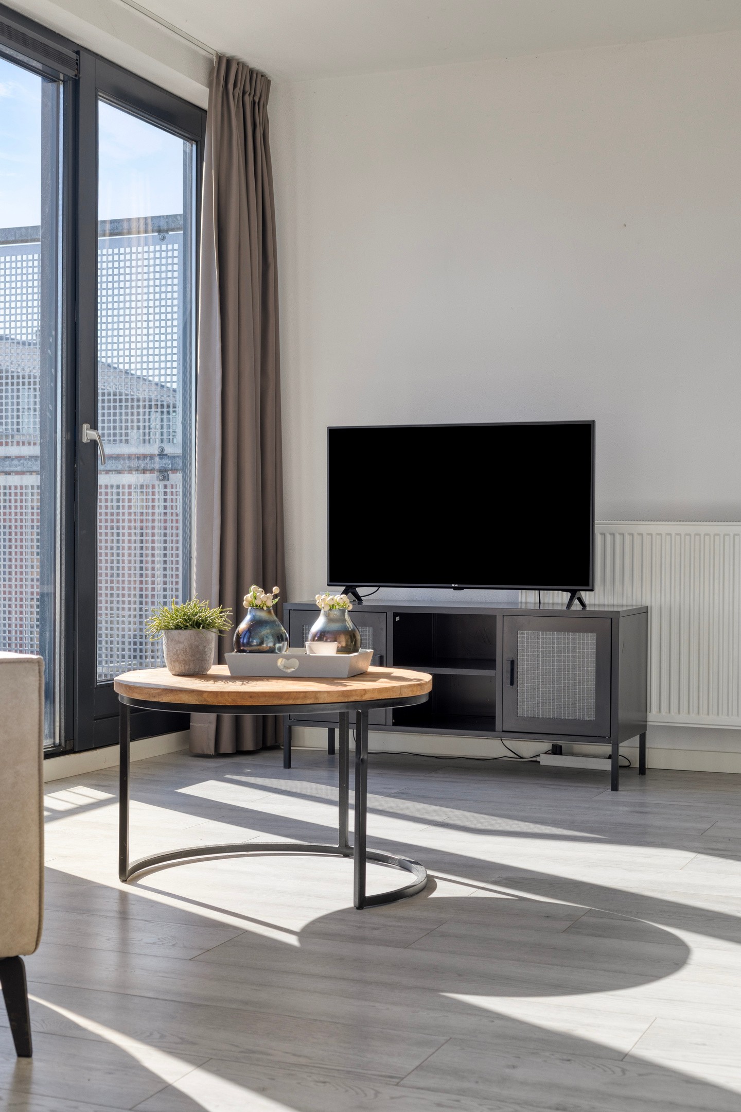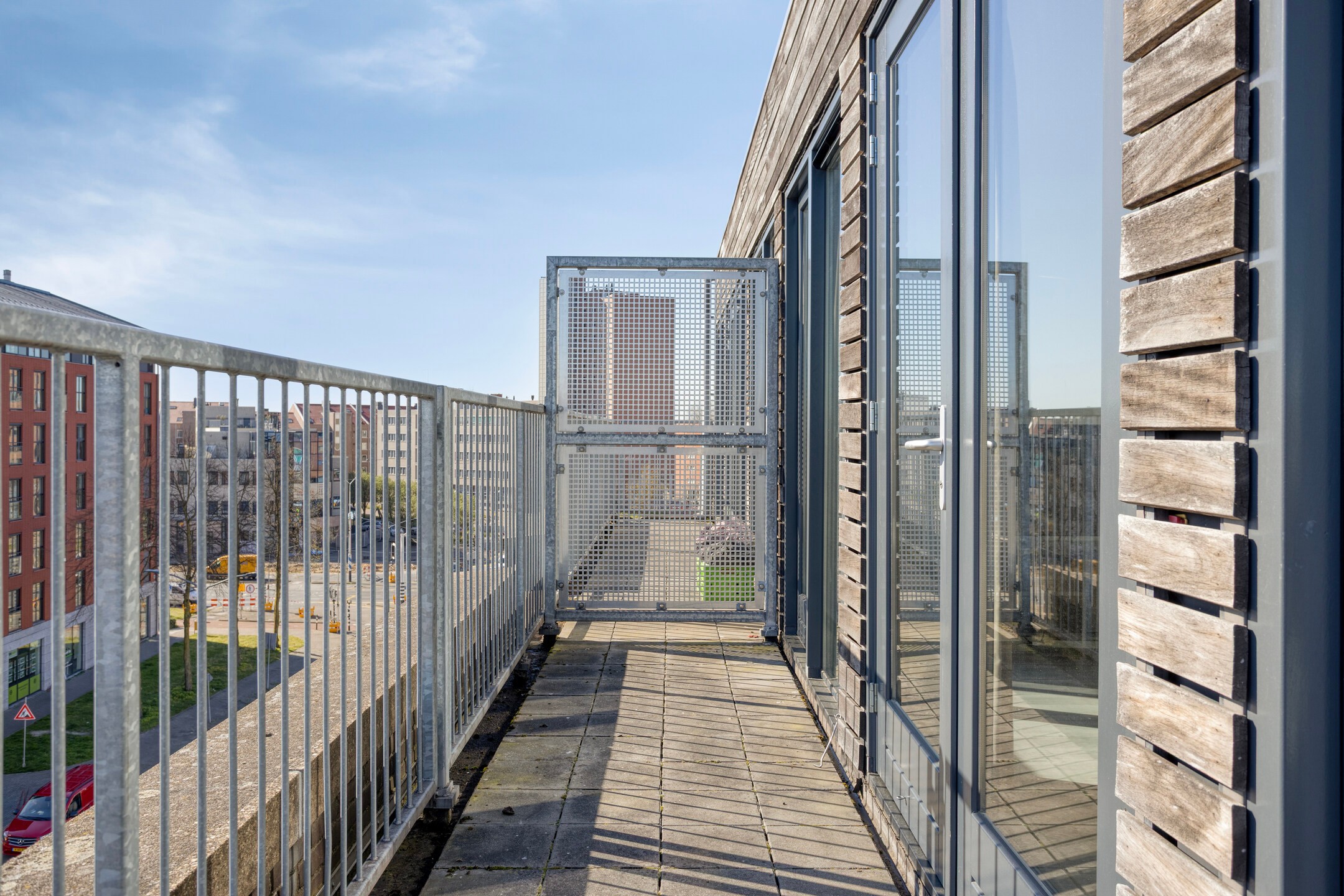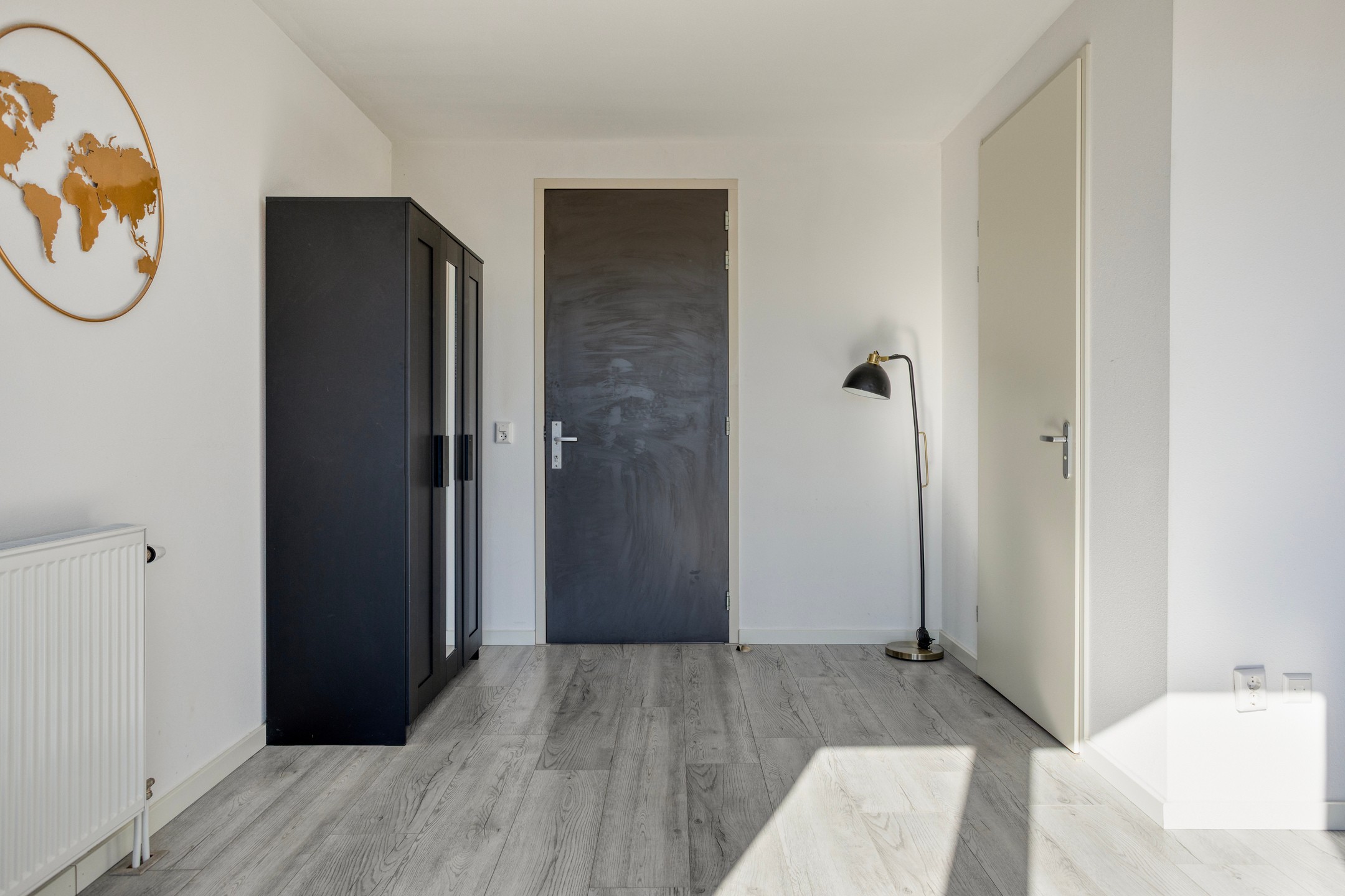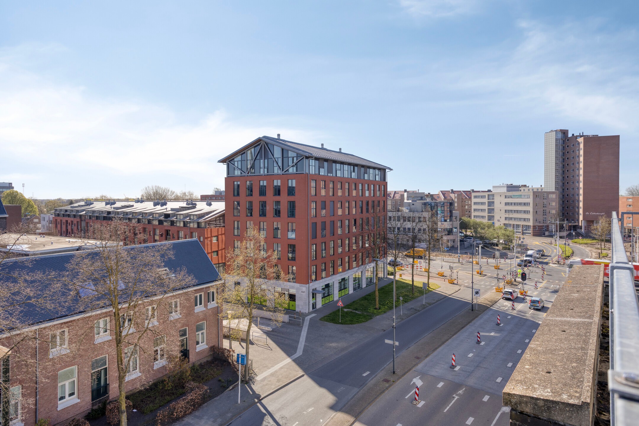 De woonruimte is afgewerkt met een laminaatvloer en ingericht met een tweepersoonsbed, eettafel, kledingkast, grote fauteuil, tv-meubel en televisie. Vanuit de studio heb je toegang tot een ruim balkon, waar je prettig buiten kunt zitten en kunt genieten van een mooi uitzicht over Helmond.