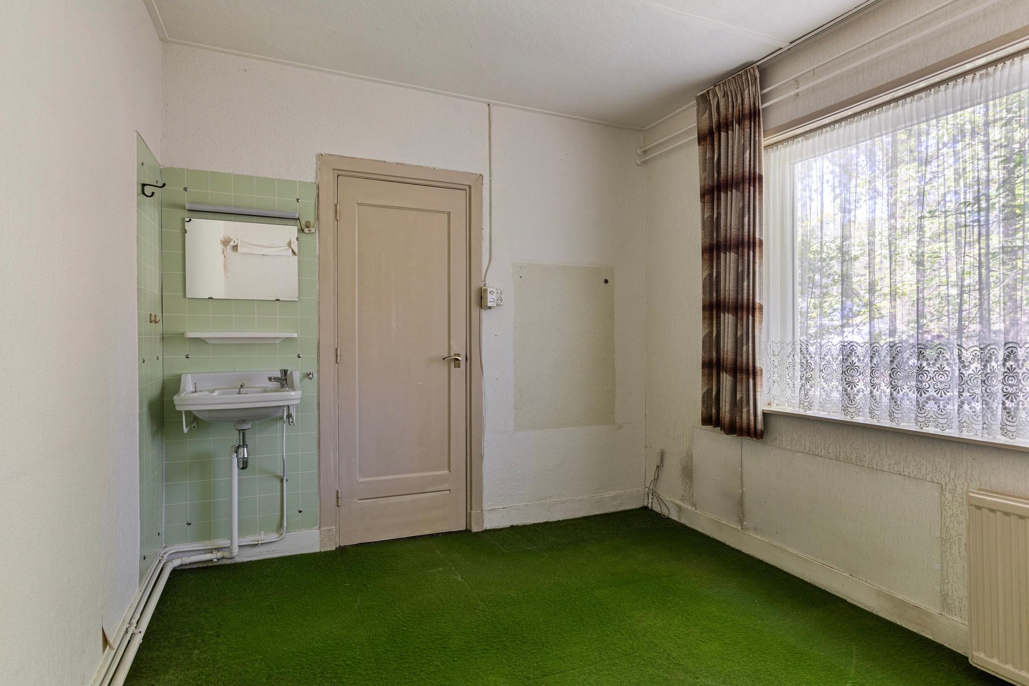 Door middel van een toegangsdeur in het woon- en eetkamergedeelte komt u in de slaapkamer van de woning. De slaapkamer is voorzien van vloerbedekking en beschikt over een eigen wastafel.