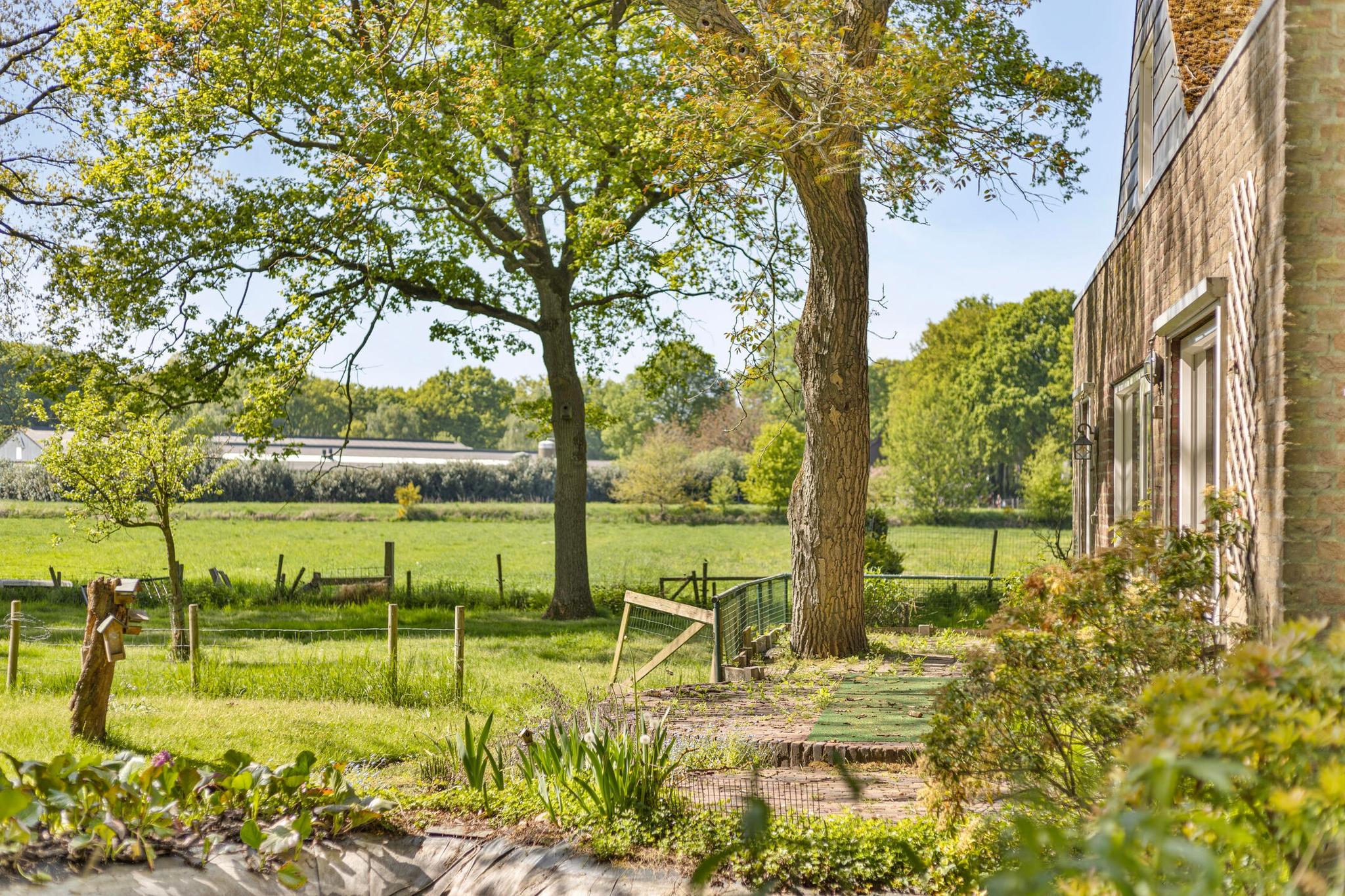 De groene tuin ademt rust en natuur dankzij de weelderige, volwassen beplanting. De tuin beschikt over een vijvertje en een meerdere bijgebouwen zoals een voormalige paardenstal, kippenhok en een schuur. Het ruime perceel biedt volop mogelijkheden voor het creëren van uw eigen droomwoning met prachtige tuin.